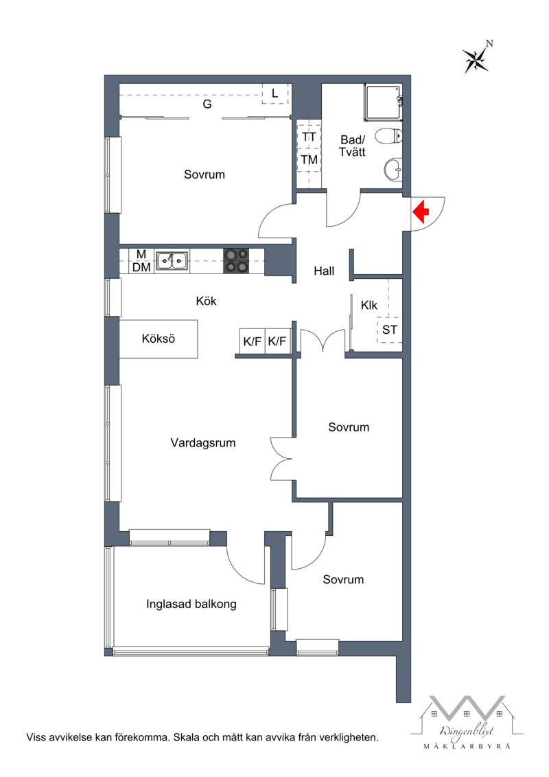 - Storlek: 3 rum, varav 2 till 3 sovrum. Boarea: 76 kvm.